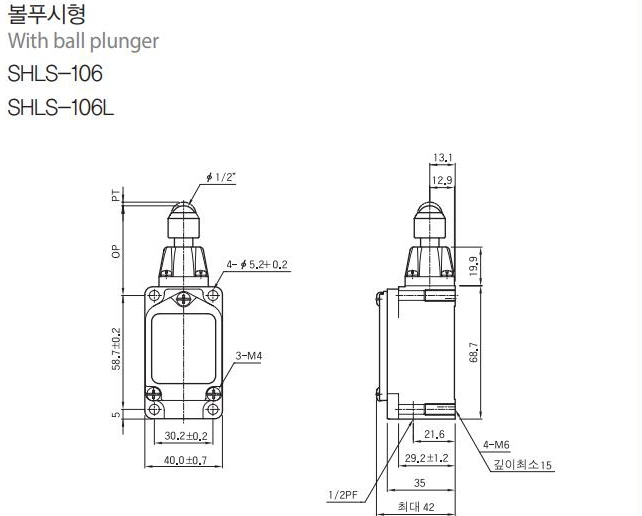 | 리미트스위치-볼푸시형 Limit Switches, with ball plunger |