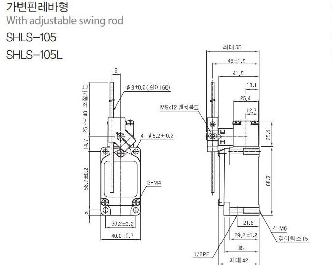 | 리미트스위치-가변핀레바형 Limit Switches, with adjustable swing rod |