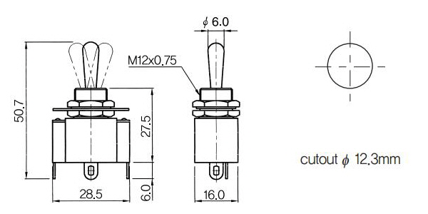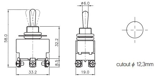 | 토글스위치-3위치형, 단투(2단자) 및 쌍투(3단자) Toggle Switches-Single&double throw switches with center-off-three positions |