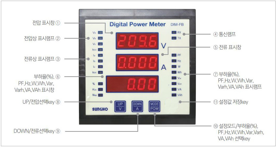 | 6 | VA | 피상전력 Apparent power | 0 ~ 999.9kVA | ±0.5% | |||||||||||||||||||||||||||||||||||||||||||||||||||||||||||||||||||||||||||||||||||